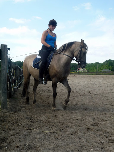 Dam zdjęcia z wakacji. Koń nie jest mój, ale ulubiony. Mianowice, 7 letni wałach sp- Szogun. Zdjęcie nie jest z treningu, bo naszych jazd treningiem nazwać nie można... nota bene sama sobie jazdę prowadziłam . Dosiad nie najlepszy, ale...