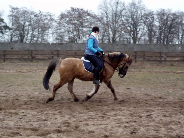 A po za tym, koń na tej jeździe chodził bardzo leciutko, szybko reagował na sygnały. Tylko tyle, że był zdenerwowany, bo raz, że nowe, dziwne miejsce jak na pracę, a dwa, to że jeździł z nami zupełnie nowy koń z sąsiedzkiej stajni.