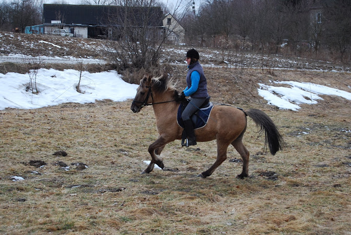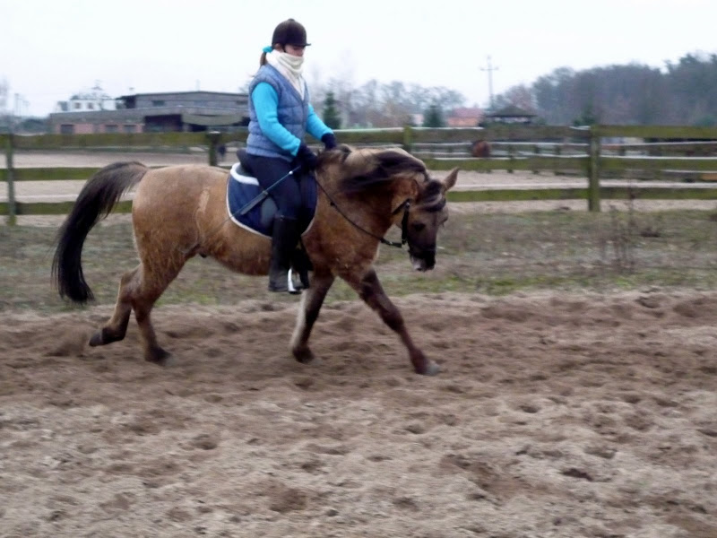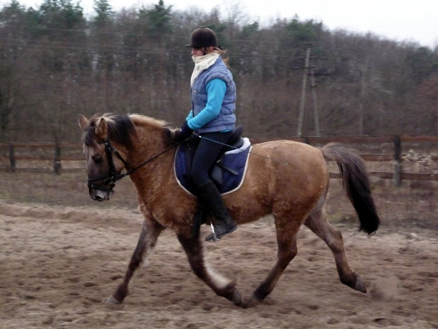 I odnośnie kłusa.... Nie wiem czy to koń był taki wybijający, ale "wstając" w kłusie nie musisz "wstawać" tak wysoko. Starczy tyle, na ile Cię koń "wyrzuci" z siodła. Terminologia mało fachowa, ale mam nadzieję, że da się zrozumieć.;)