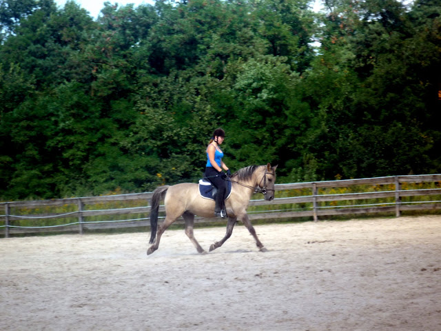 Oto nasza pierwsza jazda na nieogrodzonej polance daleko od domu i pierwsza jazda ujeżdżeniowa od... łohoho... 3 tygodni terenowania się.